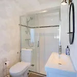 Cette propriété de Saint-Germain-sur-Ay comprend une salle de bains avec un bain à remous et une douche. Un sèche-cheveux sont également disponibles.